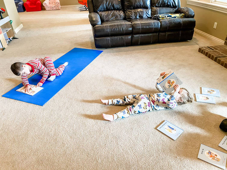 3. Scenes of a lazy Saturday morning while I exercised. Joseph is LOVING reading, especially reading to Dominic and Isabelle, and they all just adore books, which makes me so, so happy.