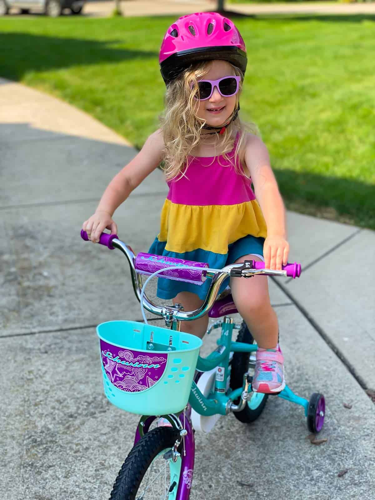 Isabelle is stylin! Looks adorable all dolled up for her bike ride.