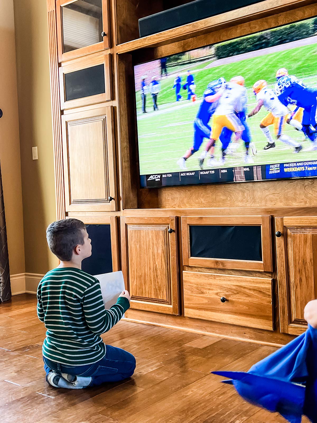2. And this one has been all-in on watching college football on Saturdays (my husband and I have gotten into it more this year, too!)… he was watching Pitt play while holding a print-out of a Pitt football helmet, using it to root them on 😍
