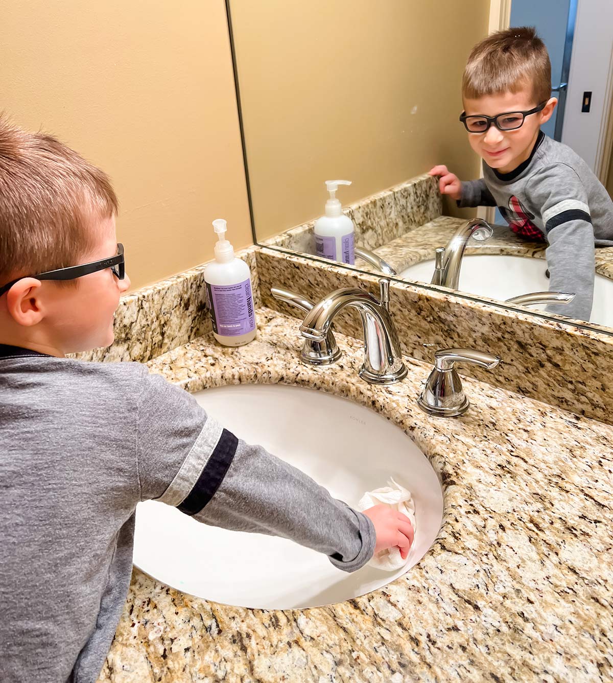 2. Dominic BEGGED me to let him help clean the bathrooms the other day while Isabelle was at school. He literally sang songs and had a huge smile on his face the entire time ๐