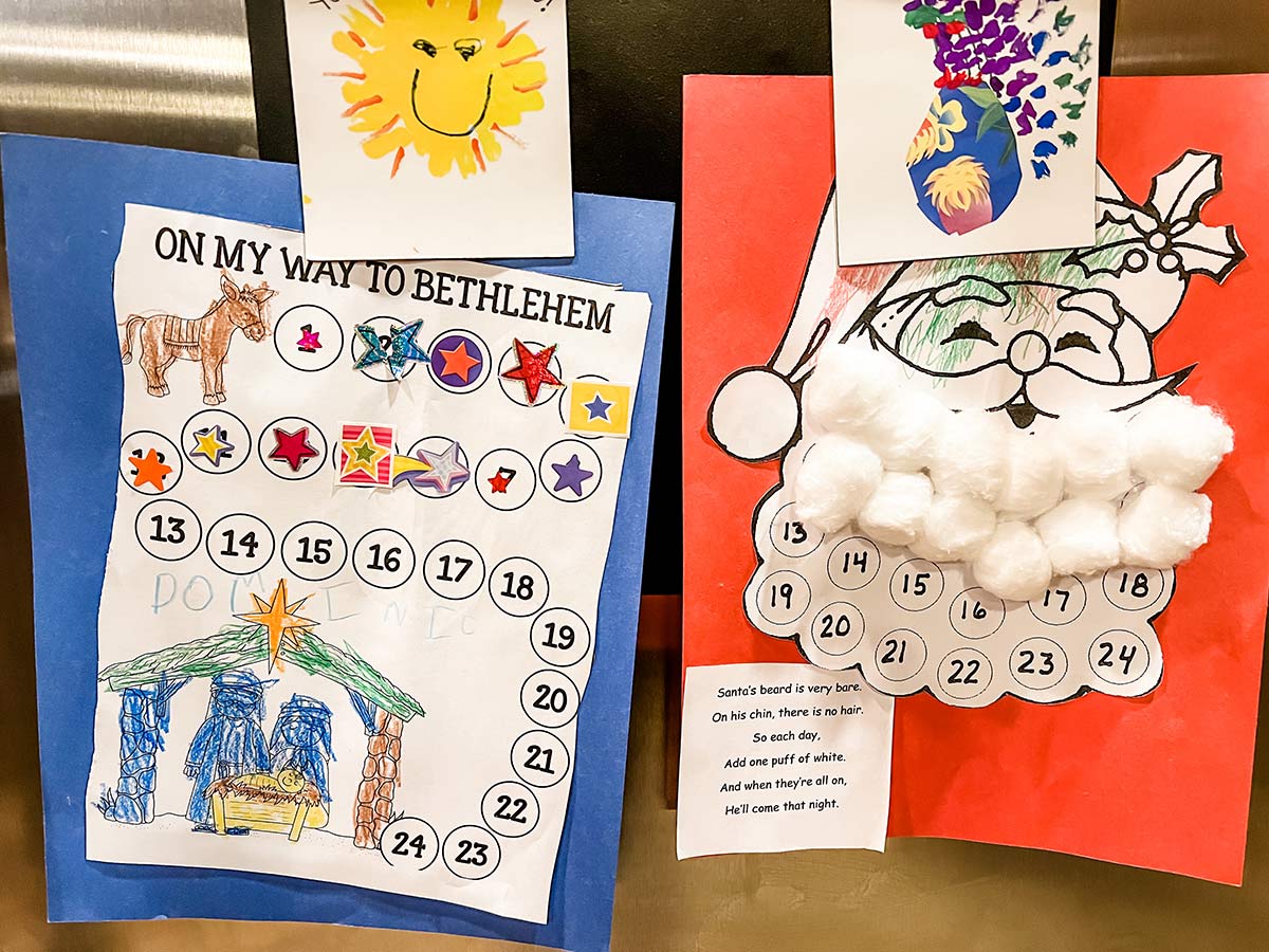 1. Dominic and Isabelleโs countdown to Christmas posters from school are bringing me so much joy! I love Dominicโs following the stars to Bethlehem (itโs the very first thing he does every morning) and I have vivid memories of doing the cotton balls on Santaโs beard when I was little; Isabelle loves her daily ritual!