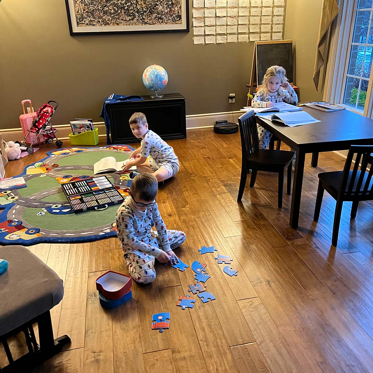 1. Last weekend, I briefly heard the kids awake out in the hallway early but dozed back off and woke up a little while later. They often find each other in the morning and play in each other’s rooms, but it was so quiet and when I came downstairs… I found them all in the playroom together, Joseph and Isabelle coloring and Dominic working on a puzzle. They seemed so grown up!!