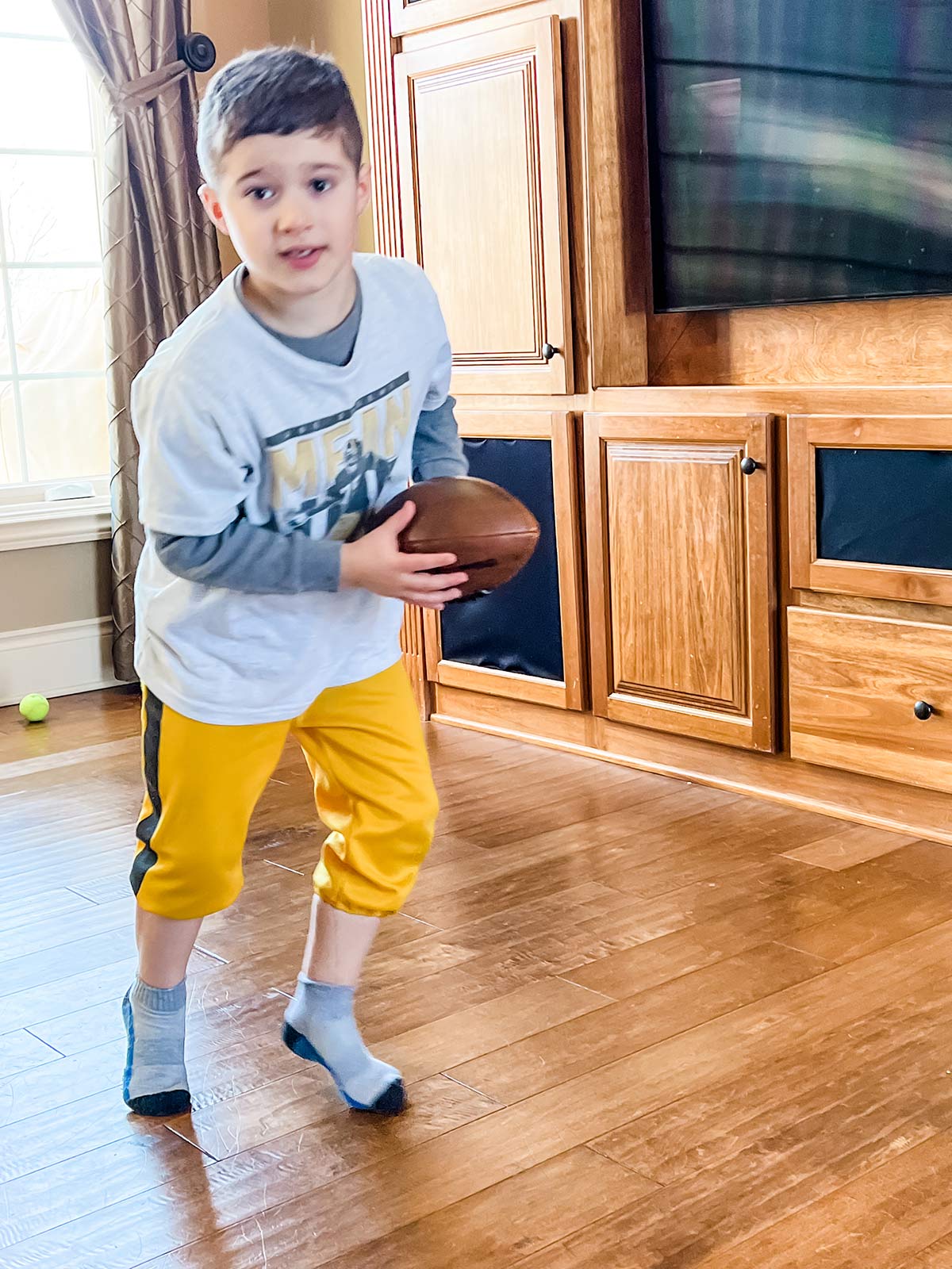 2. My in-laws gave Joseph and Dominic old child-size Steelers uniforms that my husband and his brother had when they were kids. Joseph is so into football right now and takes it very seriously when he puts on those pants, ha!