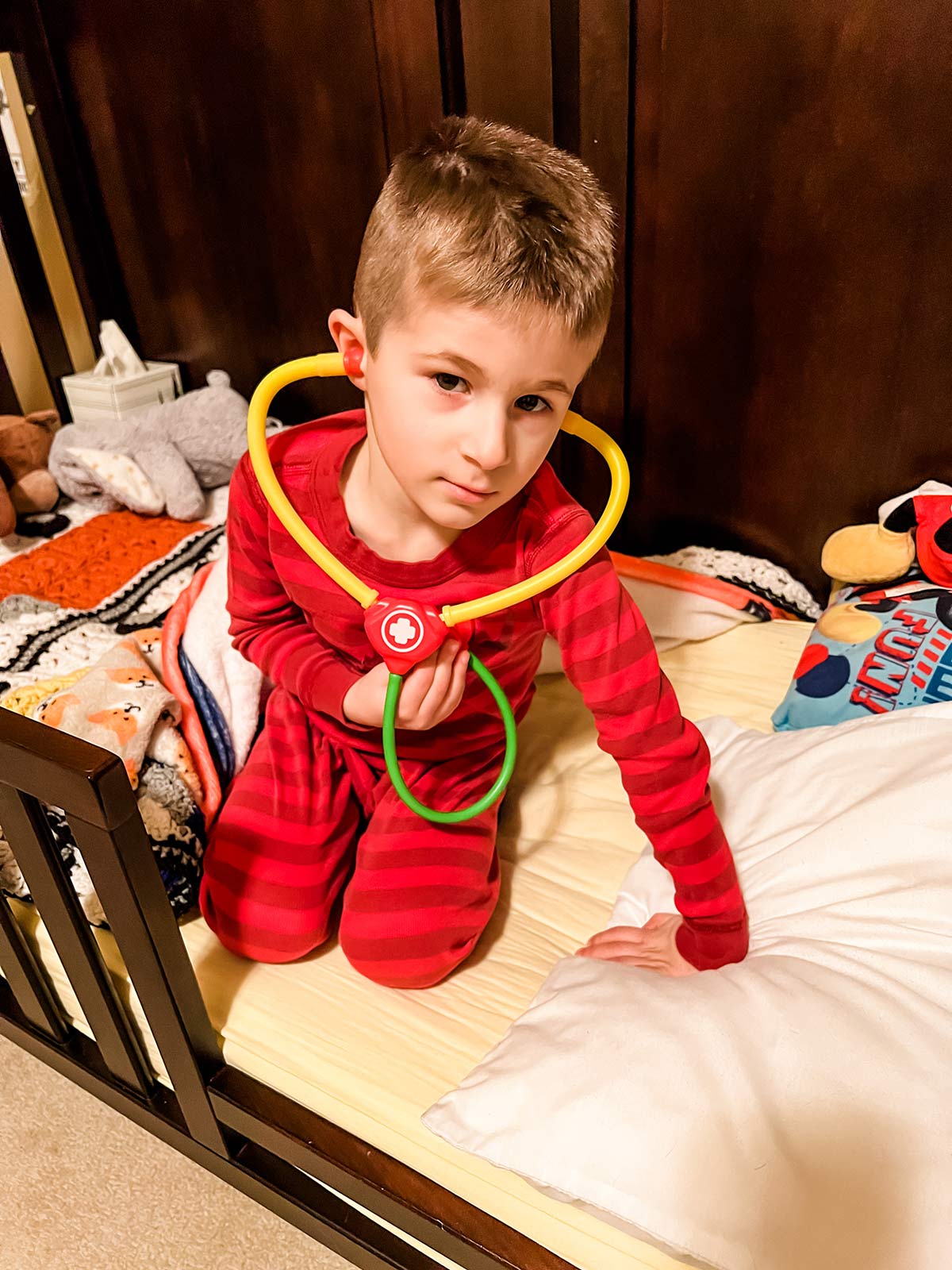 1. One night this week, the boys went upstairs to brush their teeth and get ready for bedโฆ when I walked into Dominicโs room, I found him sitting on his bed, listening to his heart very intently with a toy stethoscope. It was the sweetest sight!