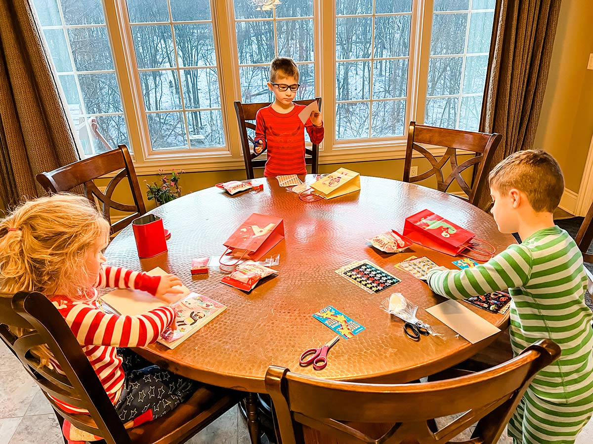 2. I forgot to share the kidsโ Valentineโs morning last weekโฆ they loved waking up to bags of special snacks and stickers!