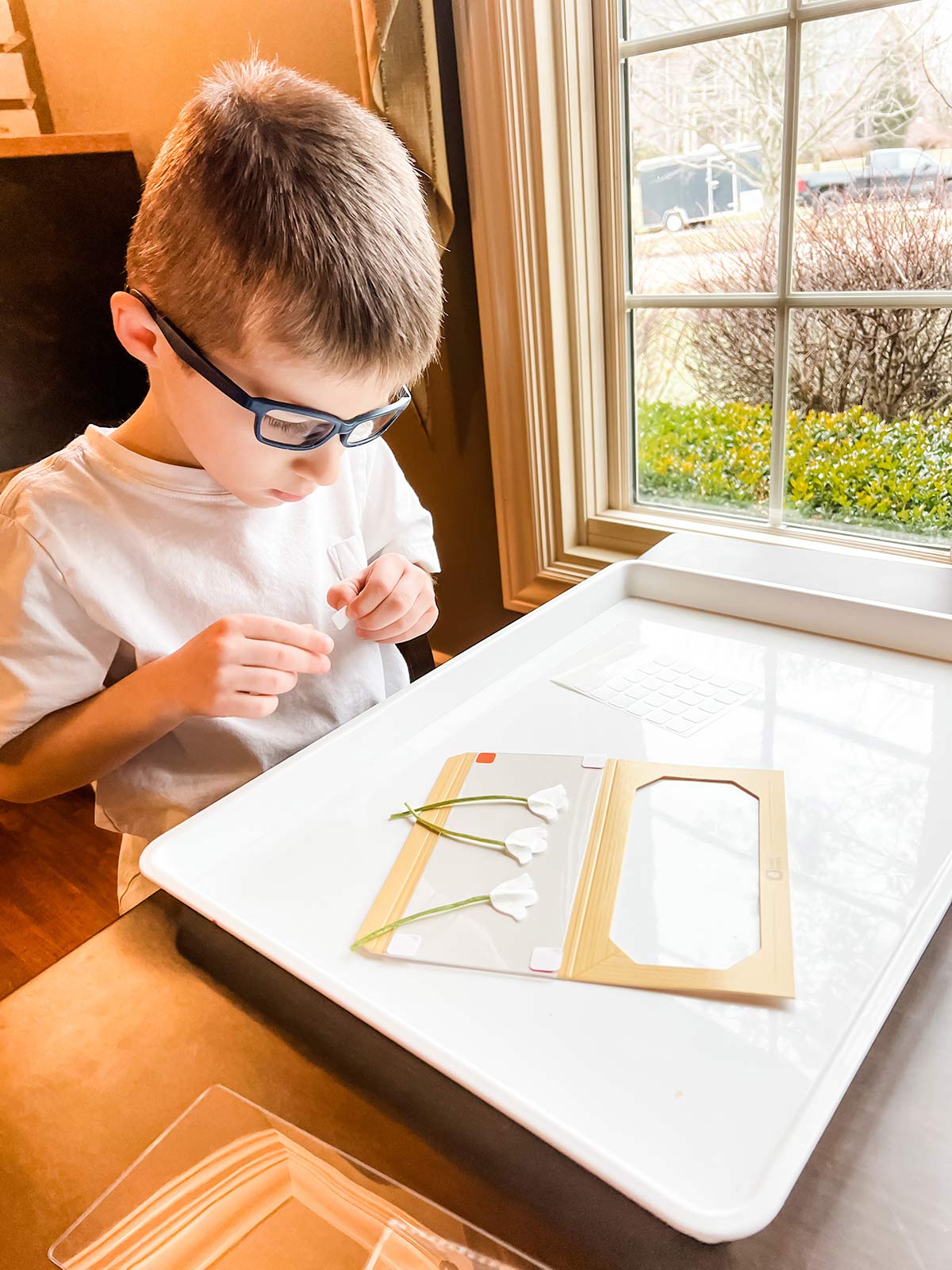 1. The two mornings this week that Isabelle was at school, Dominic asked to work on projects from his Kiwi Co. boxes. I had such a great time with him both mornings; one day he made a bow and the other was a little science experiment on how colored water can travel up a string and color paper flowers.