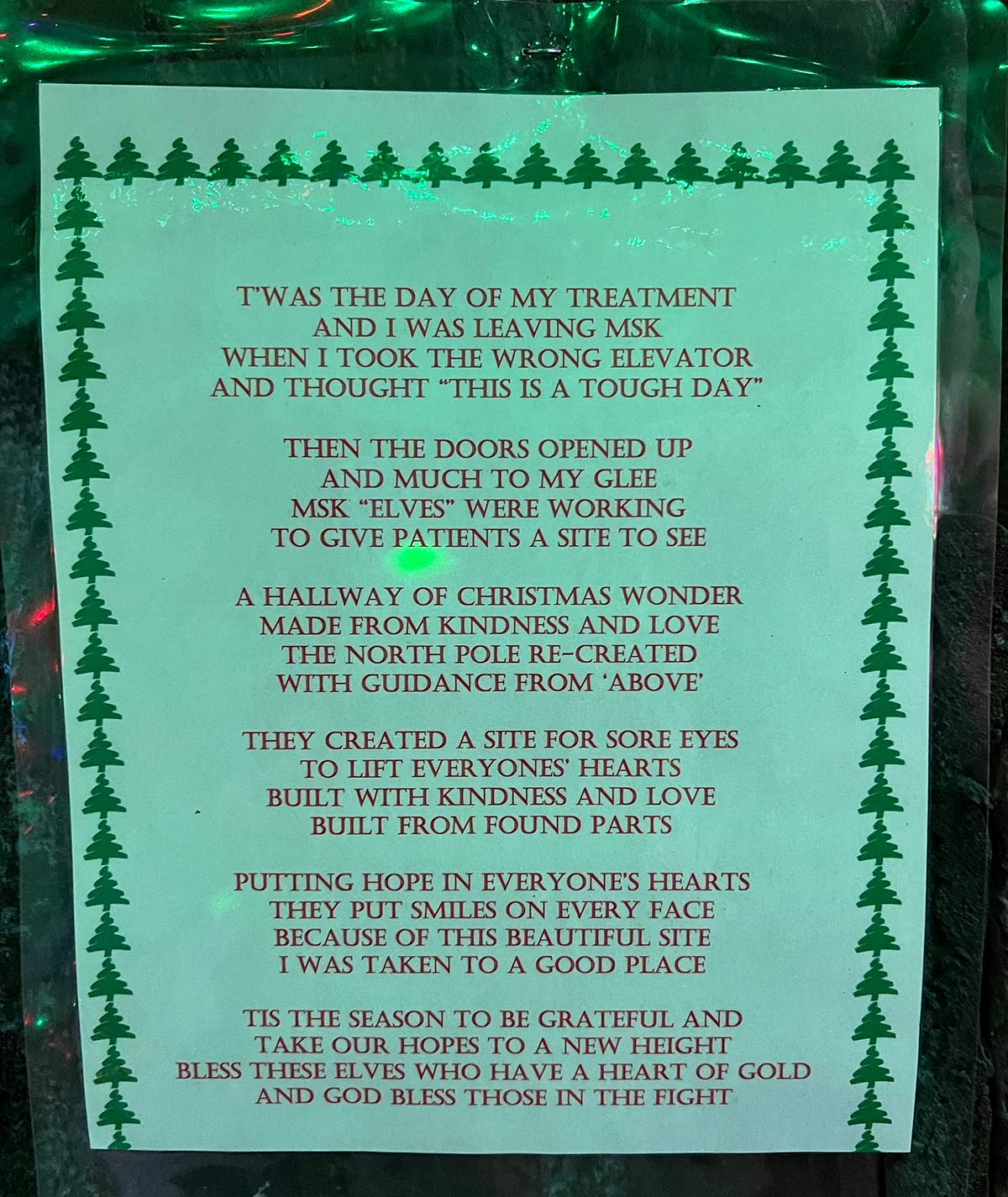 Michelle, thank you for this update. I really teared up while reading the poem about the creators of the Christmas Wonderland in the clinic. That is the sweetest thing! God bless all those involved. Your little boy (and all of you) have already been through so much. Praying.