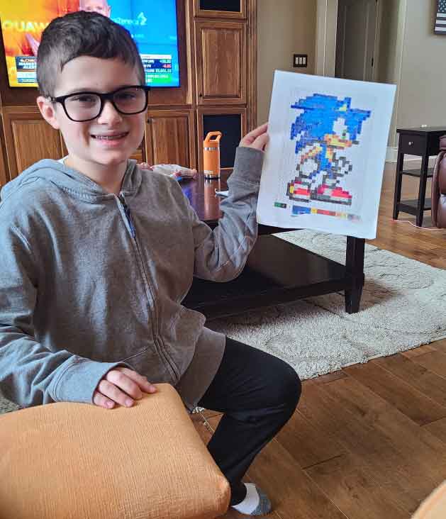 1. Joseph has always loved color by number, but his new favorite is mystery mosaic color by number, where you color a grid, revealing a picture. Iโve always adored coloring, especially color by numbers, so itโs fun to see him love it, too (and still get to color together sometimes!).