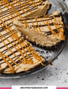 - Garnish! โ Drizzle the chilled pie with melted peanut butter and chocolate. You could also top it with Reeseโs Pieces, chopped peanut butter cups, peanut butter chips, or a combination of all of the above.