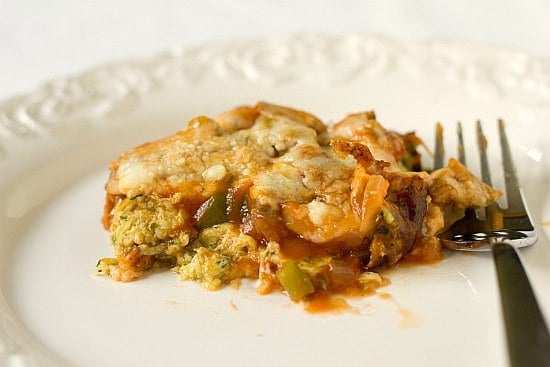 A delicious cross between a pizza, casserole and lasagna. A great way to get those fresh summer veggies into your next meal. It may not be the prettiest dish to photograph, but it sure is delicious!