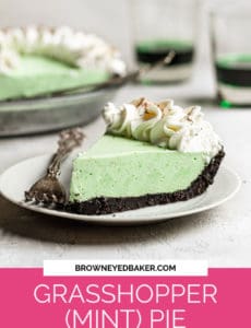 I’ve always loved the combination of smooth chocolate and refreshing mint, so it came as no surprise that I loved my first grasshopper cocktail when I tried it in college. Fast forward a few more years and I fell in love all over again with this grasshopper pie.