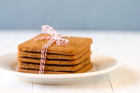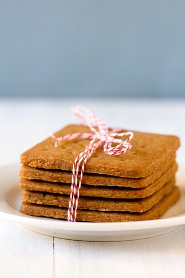 Iโ€™ve been on a tear lately when it comes to recreating some of my favorite packaged foods at home. Iโ€™ve managed to crossย Pop-Tarts, fudge pops, Snickers bars, peanut butter cups, Lofthouse sugar cookies, English muffins and hot fudge sauceย off my list. Iโ€™ve given graham crackers some thought before, but the dawning of summer and sโ€™mores season finally pushed me over the edge. I always have a box of graham crackers in my pantry; they can easily become the basis for breakfast or a quick snack. My favorite way to eat them is slathered with peanut butter (shocking, I know) โ€“ either regular creamy or Cinnamon Raisin Swirl from Peanut Butter & Co. My Chief Culinary Consultant says that when he was a kid he would always dunk them in milk until they got nice and soggy and then devoured them. No matter your favorite way to eat them, one thing is certain โ€“ when it comes to summer, graham crackers become the key component to sโ€™mores. When youโ€™re spreading them with peanut butter, dunking them, or sandwiching them with chocolate and marshmallows, this homemade version is infinitely better than anything youโ€™ll eat from a box!
