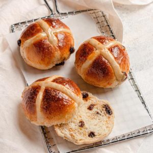 - Cross Paste: Baking the cross into the tops of the buns is the most traditional method, but you can also pipe a cross on after baking with a simple sugar glaze โ mix together powdered sugar and a little bit of milk (thick enough for a piping consistency) and pipe onto cooled buns.
