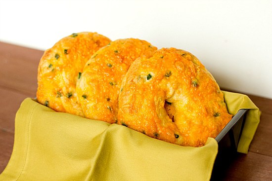 I loaded these with tons of sharp Cheddar cheese and jalapeños. Feel free to adjust the amount of peppers you use based on your personal preferences. We like things pretty spicy, so I used a full two cups of minced jalapenos, and for us it was just right. On a scale of 1 to 10, I’d say that these register about a 7 on the spicy scale, so you can use that as a guide for modifying the spice level. I think they are the perfect balance of cheesy and spicy. They are great plain, and even better with a slathering of cream cheese. My Chief Culinary Consultant, who previously had a very strong allegiance to the Cinnamon Raisin Bagels, declared these as the best bagels I have ever made. So there you have it!