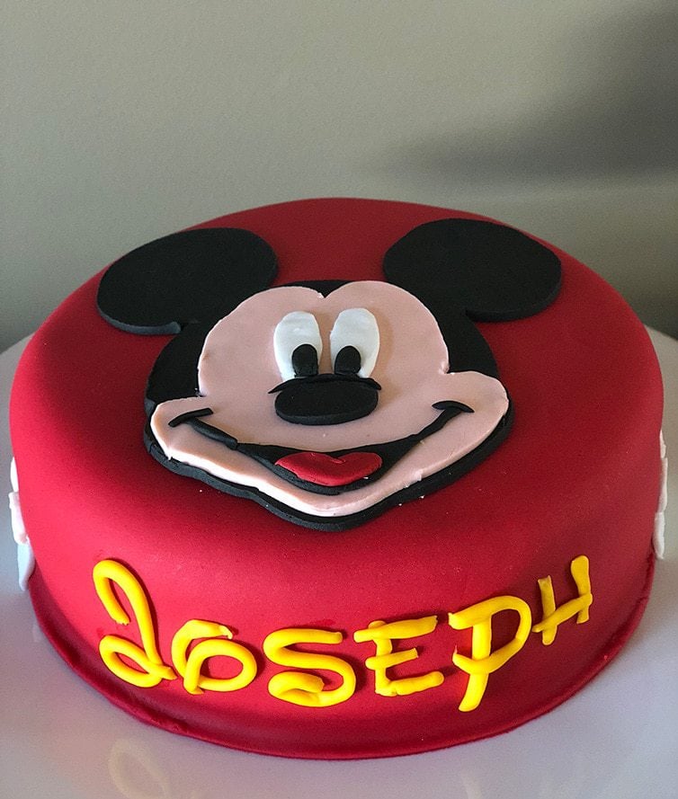 This was an easy choice once we decided on a Mickey Mouse theme for the party! I scoured Pinterest for some ideas, and since we only needed one round cake and not a tiered cake, I kept the design simple and did a Mickey face and then did Joseph’s name in the iconic Disney font on the front of the cake. Around the sides I did white Mickey ears, and that was that!