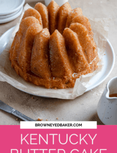 This old-fashioned Kentucky butter cake is super moist, ultra buttery, and infused with the best butter-sugar sauce. It creates a sugary, crunchy crust that you wonโt be able to get enough of! Below are tons of tips for achieving the ultimate butter cake, as well as tricks for perfectly prepping Bundt pans, making a boozy bourbon version, freezing instructions, and more.