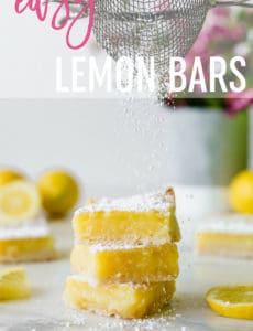 This sweet yet tangy lemon bar recipe is not only the best recipe for lemon bars but also by far the easiest to make! The shortbread crust is surprisingly soft (thank you, cornstarch!) and the lemon filling is the perfect hybrid of creamy yet firm and tart yet sweet.