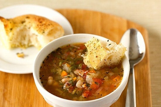 This is one of the simplest soups I have ever made, but it does contain one key ingredient – a piece of Parmesan cheese rind. The rind simmers away with the soup and helps to create more of a stock, with an intensified and more developed flavor than if you leave it out. I highly recommend not skipping this!