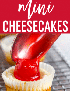 I carved out just enough time after getting the boys to bed on Friday night to whip up one of my all-time favorite Christmas recipesย โ these easy mini cheesecakes! I am such a sucker for cheesecake, so itโs no surprise that this recipe โ one of my momโs oldest and most popular โ had always been one of my favorites as a kid. I guess my cheesecake infatuation started from a young age!