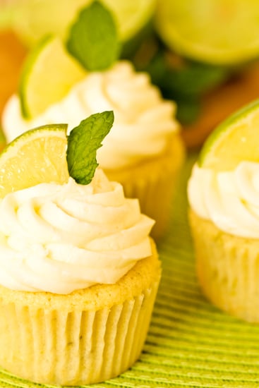 - To make the frosting, whip the butter on medium-high speed of an electric mixer using the whisk attachment for 5 minutes. Reduce the speed to medium-low and gradually add the powdered sugar, mixing and scraping the sides of the bowl until all is incorporated. Give it a mix on medium speed for about 30 seconds. Add the lime juice and rum and mix on medium-high speed until incorporated and fluffy. If the frosting appears a bit too soft, add some additional sugar, one spoonful at a time until desired consistency is reached. Frost cupcakes and garnish, if desired, with a lime wedge and sprig of fresh mint.