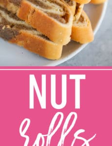 You can buy nut roll from bakeries and tons of churches in this area around the holidays, but Iโ€™m always surprised once I dig in and tackle them at how uncomplicated they are. If youโ€™ve been too intimidated to try nut roll before, have no fear! Iโ€™ve also successfully scaled this recipe, so if you donโ€™t need this many nut roll, feel free to cut it in half.