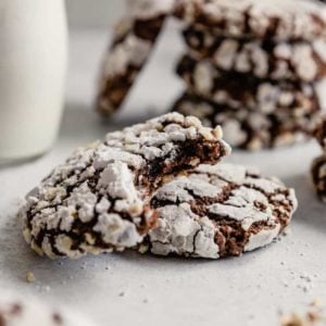 Crinkle cookies are a longtime favorite cookie, with the soft, fudgy center and the crispy cracked outside. Many of us have had traditional chocolate crinkle cookies, but adding Nutella into the mix blew my mind; then adding espresso powder and chopped nuts made them hazelnut perfection.