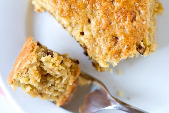One of the things I love most about scones is the tender quality the crumb has, and the oats in these scones enhances the tenderness, as well as adds a bit of chewiness to the texture. Add to that peanut butter flavor, chunks of peanuts and chocolate chips, and you have one of the most amazing scones to ever grace your plate. If youโre really feeling adventurous, you could slice the scone in half horizontally and make yourself a peanut butter and banana sandwich. I know what Iโm having for at least one meal tomorrow!