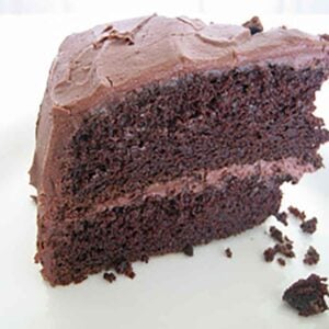 For dark chocolate lovers, you may want to try the variant of this cake I made. Since I had the Hershey’s Especially Dark cocoa powder in the house, I followed the directions on the back of the cocoa box. It’s almost exactly the same recipe, just with dark cocoa powder. There’s also a recipe for Especially Dark frosting on there too. I agree that this is the best chocolate cake ever. I made it a 3 layer cake and reduced the bake time to about 20 min. My cake was hideous, so I’ll have to work on that, but it was really decadent and the chocolate flavor is really bold. Oh! another tip, I usually choose butter over non-stick spray to grease my baking pans, but butter wasn’t enough, and my cakes stuck really badly. This is a super moist and sticky cake, so you will need a good amount of grease on your cake tin.