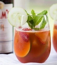 - Sliced cucumber, strawberries and fresh mint to garnish