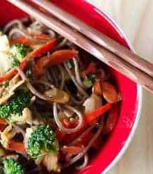 Soba Noodle Stir-Fry with Spicy Almond Butter Sauce