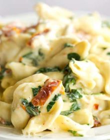 Tortellini in Parmesan Cream Sauce with Spinach and Sun-Dried Tomatoes