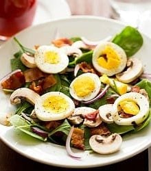 Warm Spinach Salad with Bacon, Mushrooms & Hard-Boiled Eggs