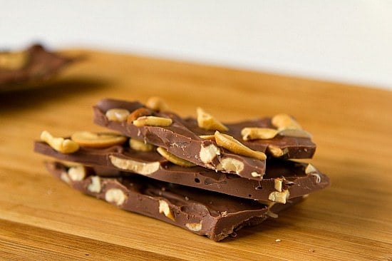 A couple of weeks ago I met a friend of mine for lunch and mentioned that after lunch I was heading to the mall. She asked if I hit up the Godiva store when I go, and I realized that I really donโt. I had only been in there once with another girlfriend who had stopped in to buy chocolate-covered strawberries. Well, she planted the seed and there was no way I was going to walk by Godiva without stopping in that day. And so a couple of hours later I strolled by and jumped right in. They were running a special on the chocolate in their display case where you could buy three or four and get one free, or something to that effect. So I went to work deciding on what I would sampleโฆ I picked up a couple of truffles and then saw a salted caramel and cashew bark. It was a no-brainer. You could get it in milk or dark chocolate, and I went straight for the milk. I held out until the car ride home, and then dug in. I was immediately smitten and knew instantaneously that I would need to recreate it at home as soon as possible.