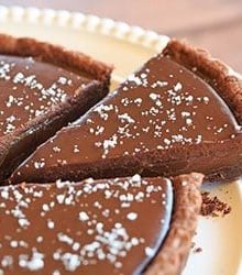 Chocolate shortbread crust + homemade salted caramel sauce + chocolate ganache + fleur de sel.