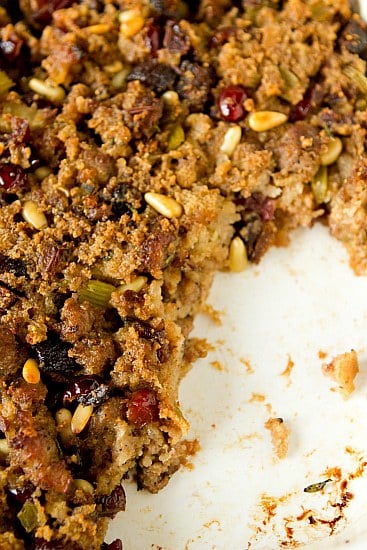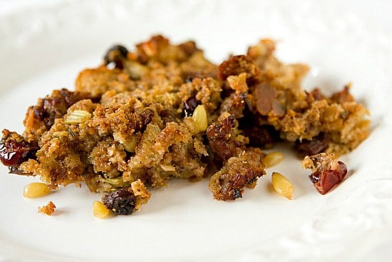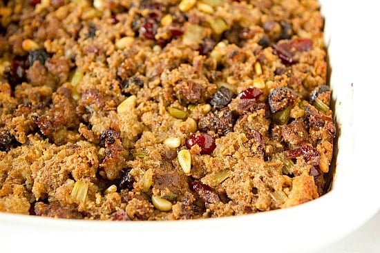 As I mentioned above, this was a HUGE hit last year. Everyone was ooh-ing and aah-ing over it, asking what was in it and how it was made. My plan this year is to somehow hoard a portion for myself. Shhh, I’m not going to tell anyone where I’m stashing it! I highly recommend making this stuffing – you will be crowned a Thanksgiving rock star (and really, what better type of rock star is there?).