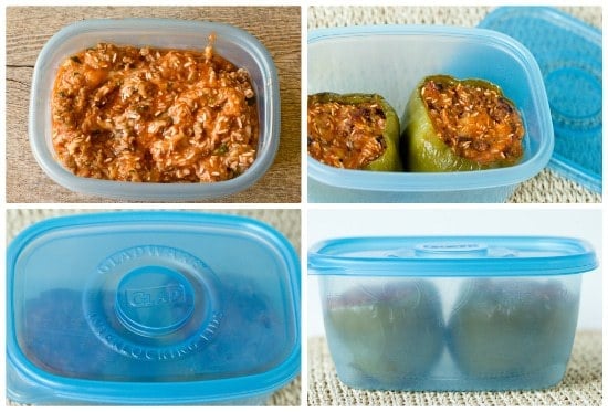 Stuffed peppers are one of those easy meals that can be made even easier by making them ahead of time and freezing them. You can do it one of two ways: either make the filling and portion it out in smaller containers and freeze; or, you can assemble the peppers, but instead of baking them, set them on a baking sheet in the freezer until they are set, then wrap in plastic wrap and place in airtight containers in the freezer.
