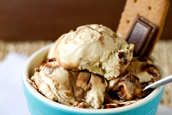 - Churn the Ice Cream: Before churning, whisk the custard vigorously until it is smooth and has a pourable consistency (it will be a little spongy when it first comes out of the fridge). Freeze in your ice cream maker according to the manufacturer's directions. When it's done churning, gently fold in the chopped graham crackers with a rubber spatula. Spoon some of the fudge swirl onto the bottom of the storage container. As you remove the ice cream from the machine, layer generous spoonfuls of the sauce between layers of the ice cream, ending with a top layer of ice cream. Do not stir the fudge into the ice cream, as it will make the ice cream muddy looking. Freeze until the ice cream is firm, at least 2 hours.