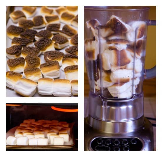 - Make the Ice Cream Base: Spread the marshmallows in a single layer on a parchment-lined baking sheet. Place them under the broiler for 30 seconds to 1 minute, or until toasted (keep a close eye so they don't start smoking!). Take them out and, using tongs, flip them over and pop them back under the broiler for another 30 seconds or so, until the other side is toasted. (Alternately, you can use a kitchen torch to toast them right there on the pan.) Set the marshmallows aside.