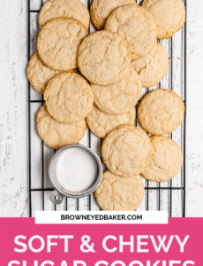 These easy drop-style sugar cookies require NO chill time and bake up soft and chewy. Roll them in granulated sugar before baking for a sugary crust, or bake them plain, frost them, add sprinklesโฆ itโs the best and most versatile sugar cookie recipe youโll find!