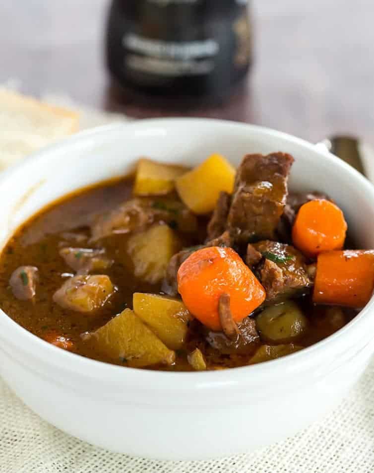 This Guinness Beef Stew recipe is rich and hearty, with a robust gravy-like sauce that is flavored by Guinness. A must for St. Patrick's Day!