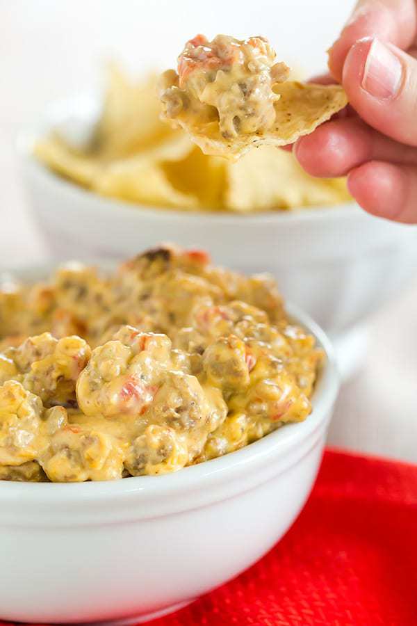 Savory, creamy, and ultra-addictive, thisย sausage dipย is an absolute crowd-pleaser. Made with 3 ingredients and ready in 15 minutes, this easy dip comes together for the ultimate party appetizer. Serve it up with tortilla chips, pretzel crisps, and more!