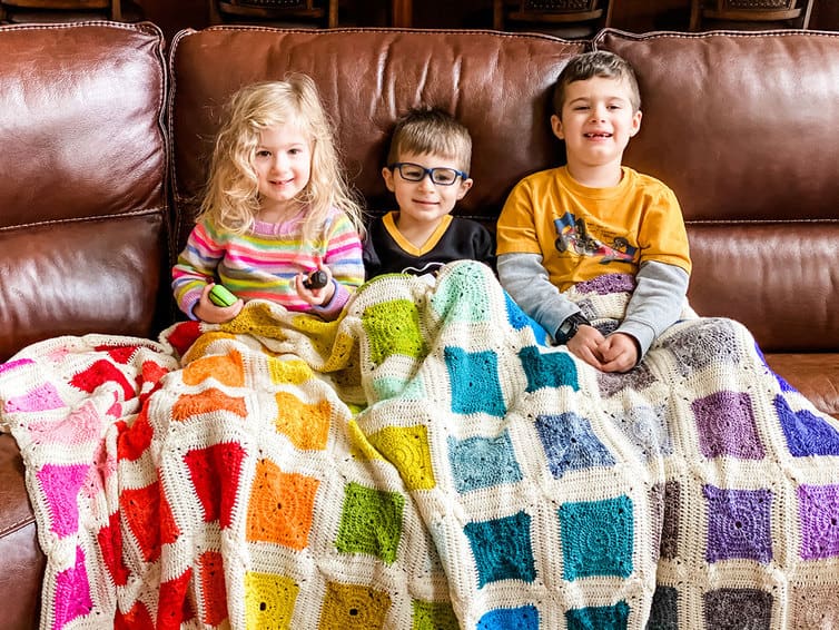 Love the afghan. I also crocheted one for our daughter and son. It took me 2 hours to crochet a row. Your children are cuties and growing up fast. Love your recipes and hearing/seeing pics of your sweet family, stay healthy!