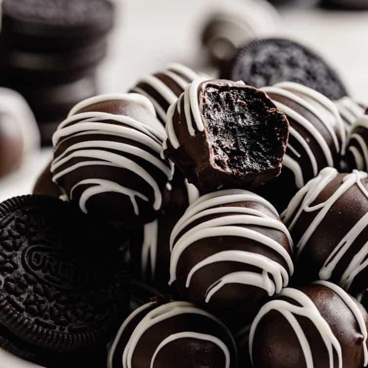 Oreo Truffles – These Oreo Truffles are packed with Oreo cookie crumbs, cream cheese, and chocolate. With no bake time and only four ingredients, these are the perfect quick dessert for holiday cookie trays and gifts!
