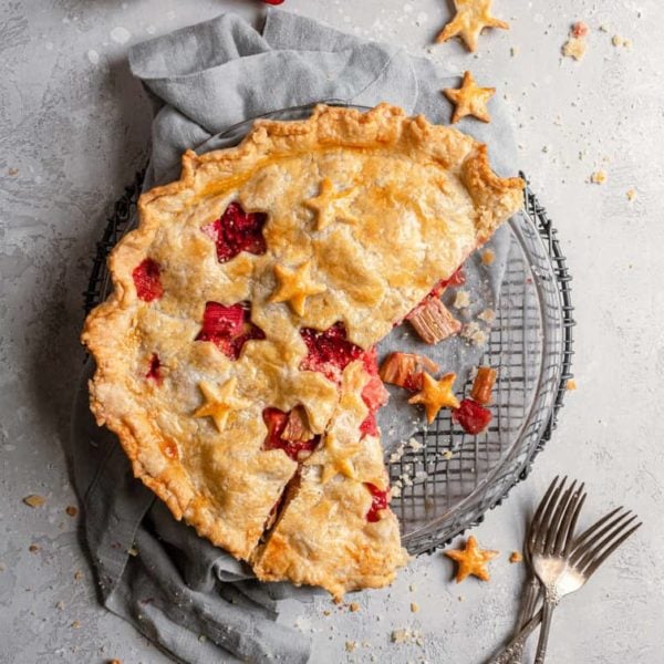 Strawberry Rhubarb Pieย โ This old-fashioned strawberry rhubarb pie recipe features a tender, flaky crust and a filling that highlights the delicious combination of sweet strawberries and tart rhubarb with a touch of citrus.