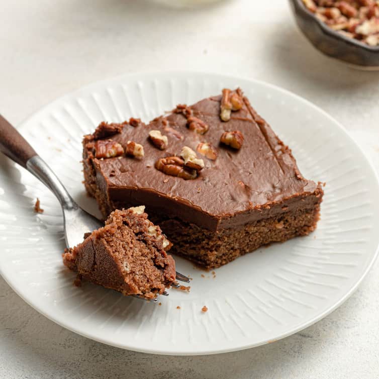 Aunt Dorothyโs Texas Sheet Cake Recipeย โ This classic Texas sheet cake is a chocolate loverโs dream! Insanely moist chocolate cake is topped with a fudge-like frosting and chopped pecans.
