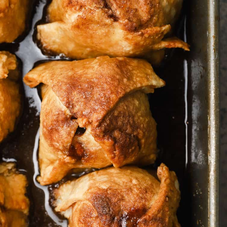 Old-Fashioned Apple Dumplings – These homemade apple dumplings are easier than you’d think – Granny Smith apples are peeled and cored, stuffed with butter and cinnamon-sugar, wrapped in a pastry crust, and covered in a buttery brown sugar sauce.