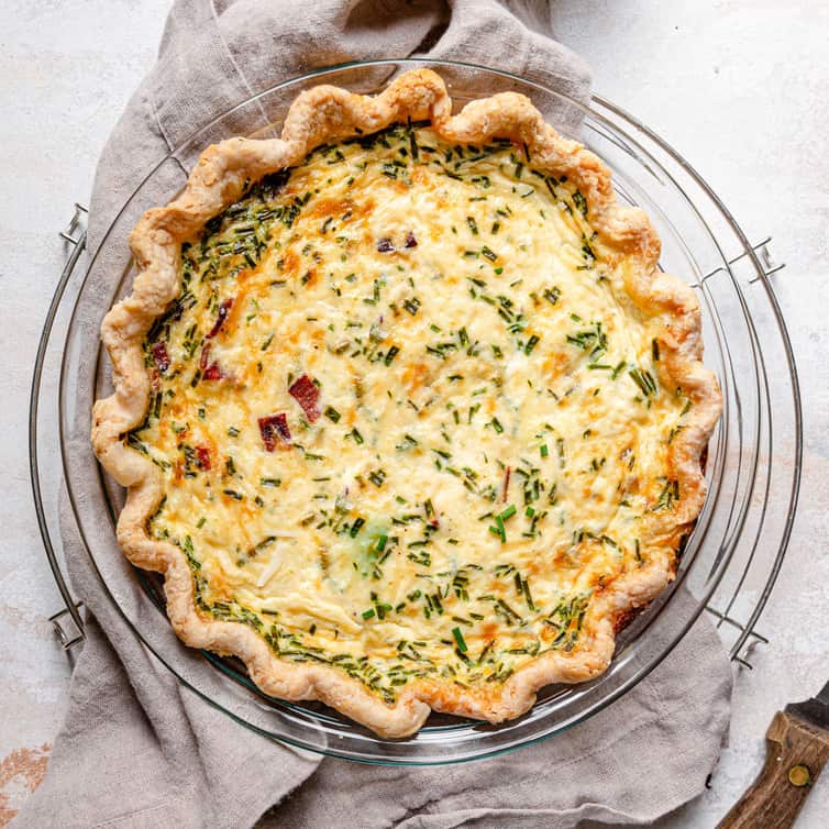 Perfect Quiche Lorraineย โ This monthโs BEB Bake-Along! A perfect recipe for the French classic, quiche Lorraine โ a buttery pie crust filled with a savory custard studded with bacon, Gruyere cheese, and chives.