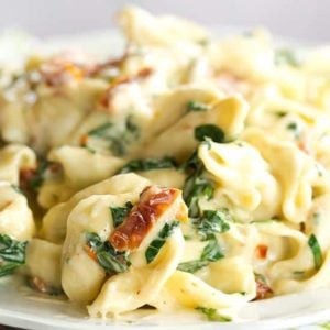 Tortellini in Parmesan Cream Sauce with Spinach and Sun-Dried Tomatoes