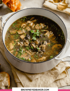 I used the leftover turkey carcass from Thanksgiving for stock. Didnโt have much turkey left, so used 16 ounces of mushrooms. This was a great soup. I did add 1 Tablespoon of apple cider vinegar to โbrighten it upโ as noted in a prior post. Leftovers in freezer for another day! Thanks, Michelle!!
