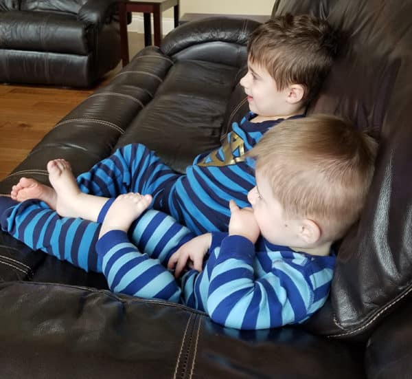 Look how Dominic is sitting with his little legs on Josephโs ~ so cute! I hope that everyone is feeling better soon. Take care, Stacey